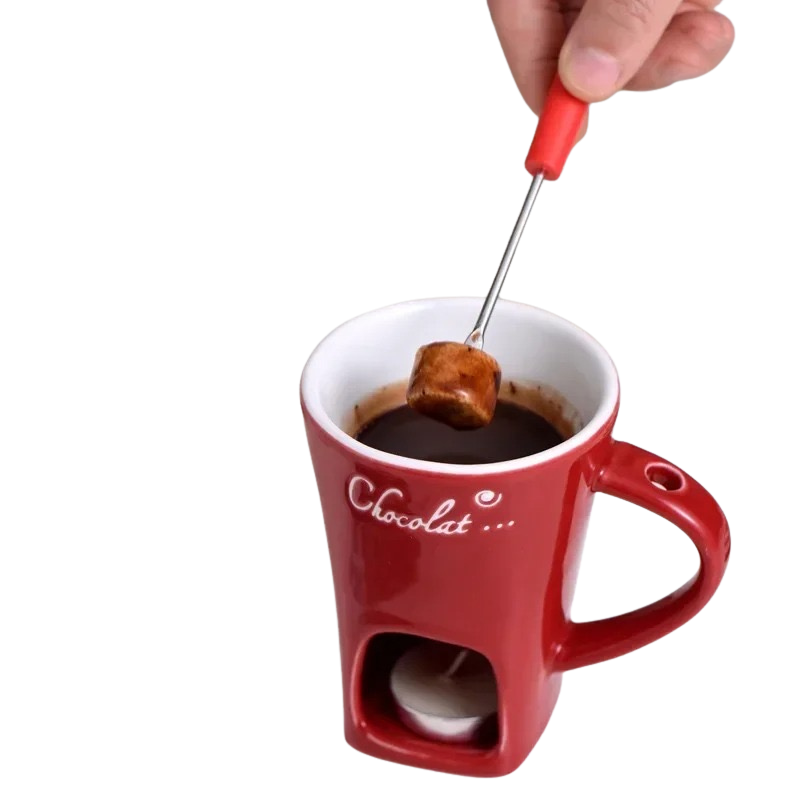 This sweet fondue cup for date night is so convenient. It can be set up as your own little personal cup! I love the quality of the glass. The functionality of the fondue cup is amazing. It even has a little fork included.I can also take this on the road with me in my RV. It’s definitely worth it.